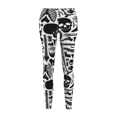 Skeleton Halloween Leggings, Black White Skull Human Bones Anatomy Goth Yoga Pants, Women's Casual Skinny Leggings