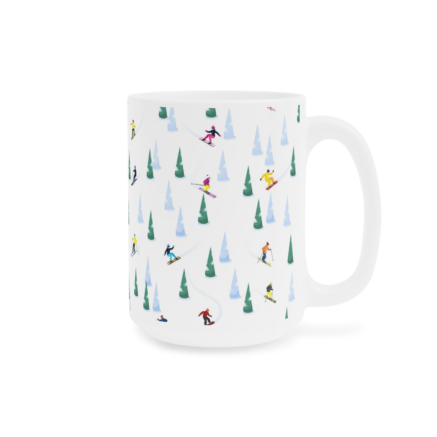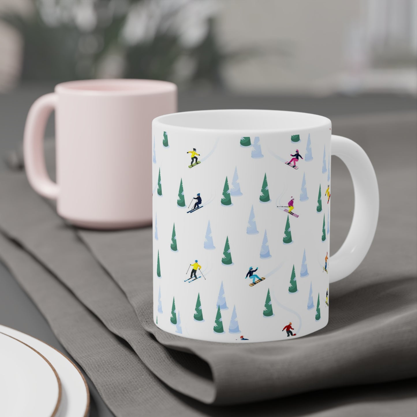 Ski Coffee Mug, Snowboard Apres Ski Cute Winter Sport Ceramic Cup Tea Lover Unique Microwave Safe Novelty Cool (11oz\15oz\20oz)