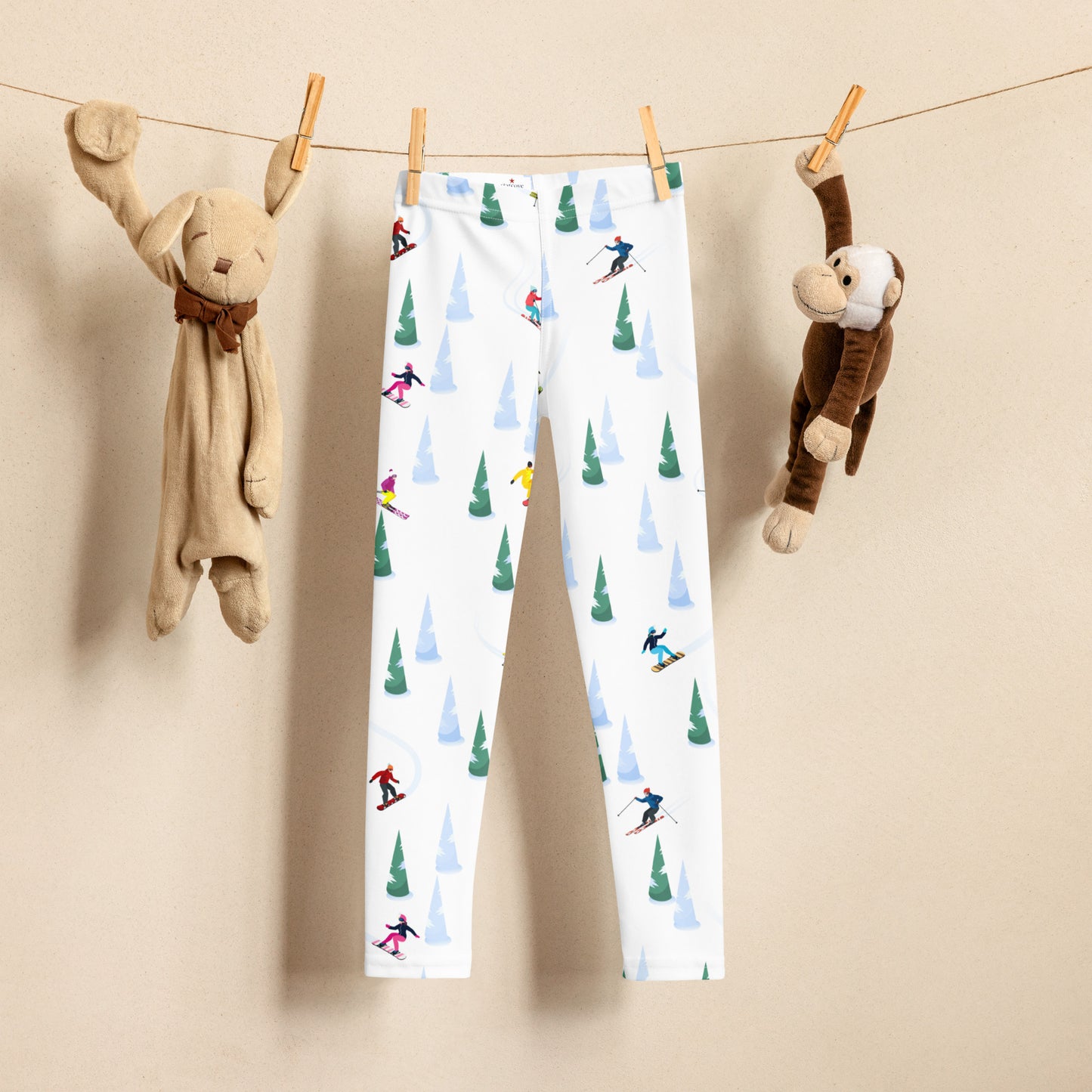 Ski Kids Girls Leggings (2T-7), Skiing Snow Vintage Winter Toddler Children Cute Printed Yoga Pants Graphic Stretch Tights Workout