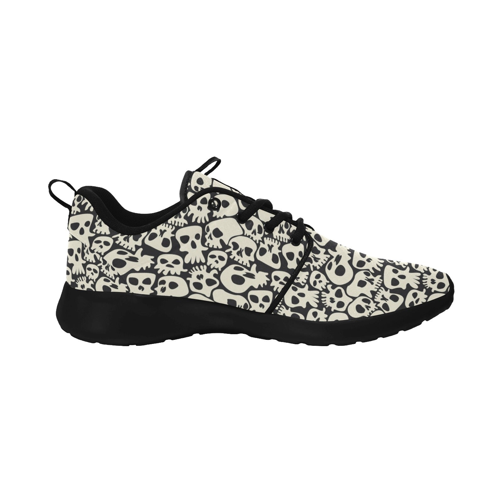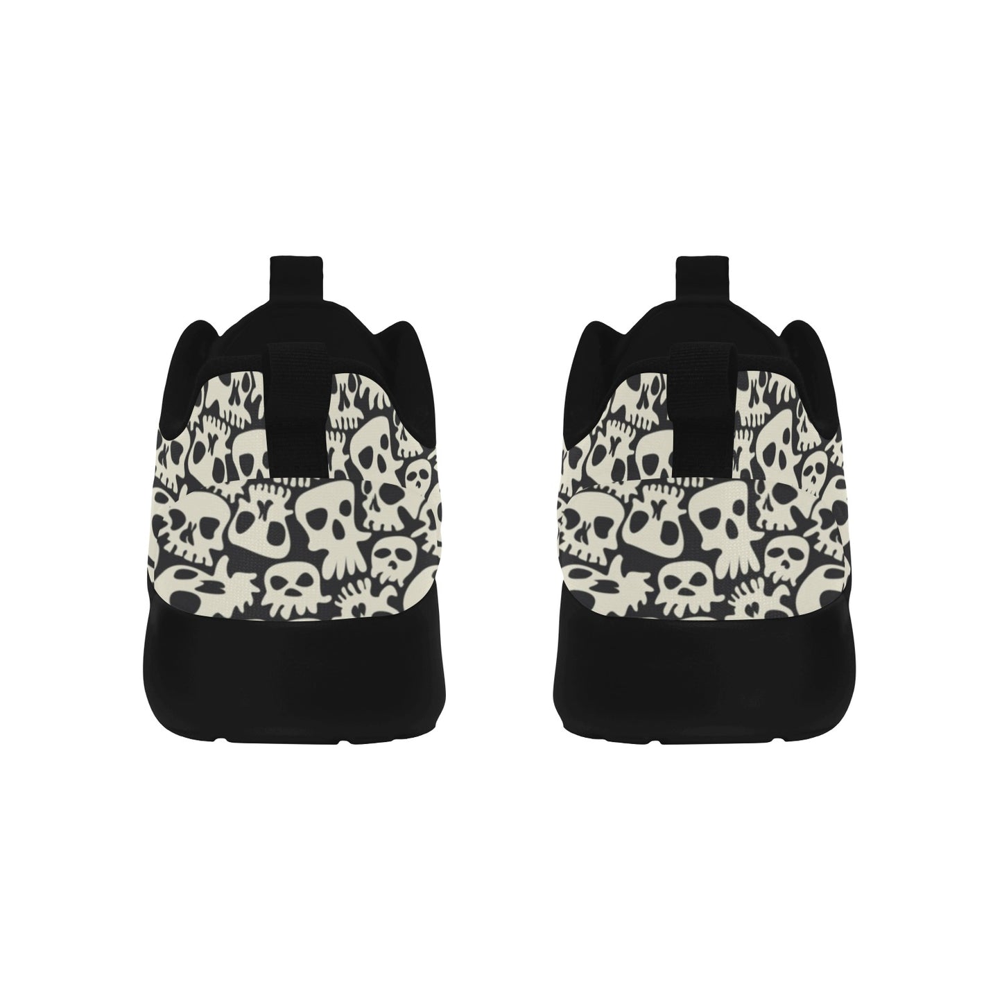 Skull Men Pull Loop Sneaker, Halloween Ghosts Black White Scary Lace Up Athletic Mesh Breathable Print Designer Casual Sport Shoes Trainers