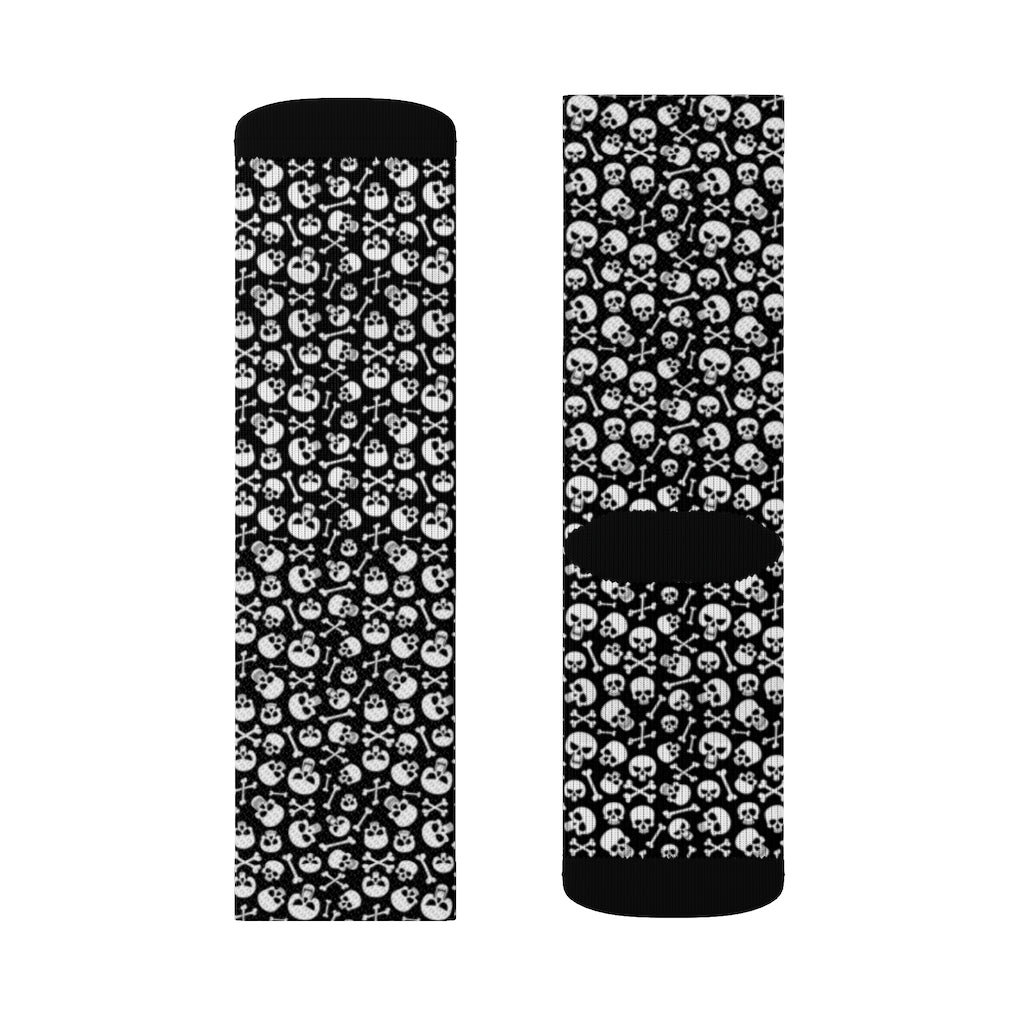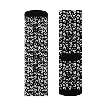 Skulls Pattern Socks, Skeleton Black Emo Punk Day Of Dead Sublimation Women Men Funny Fun Novelty Cool Funky Crazy Casual Cute Crew Unique