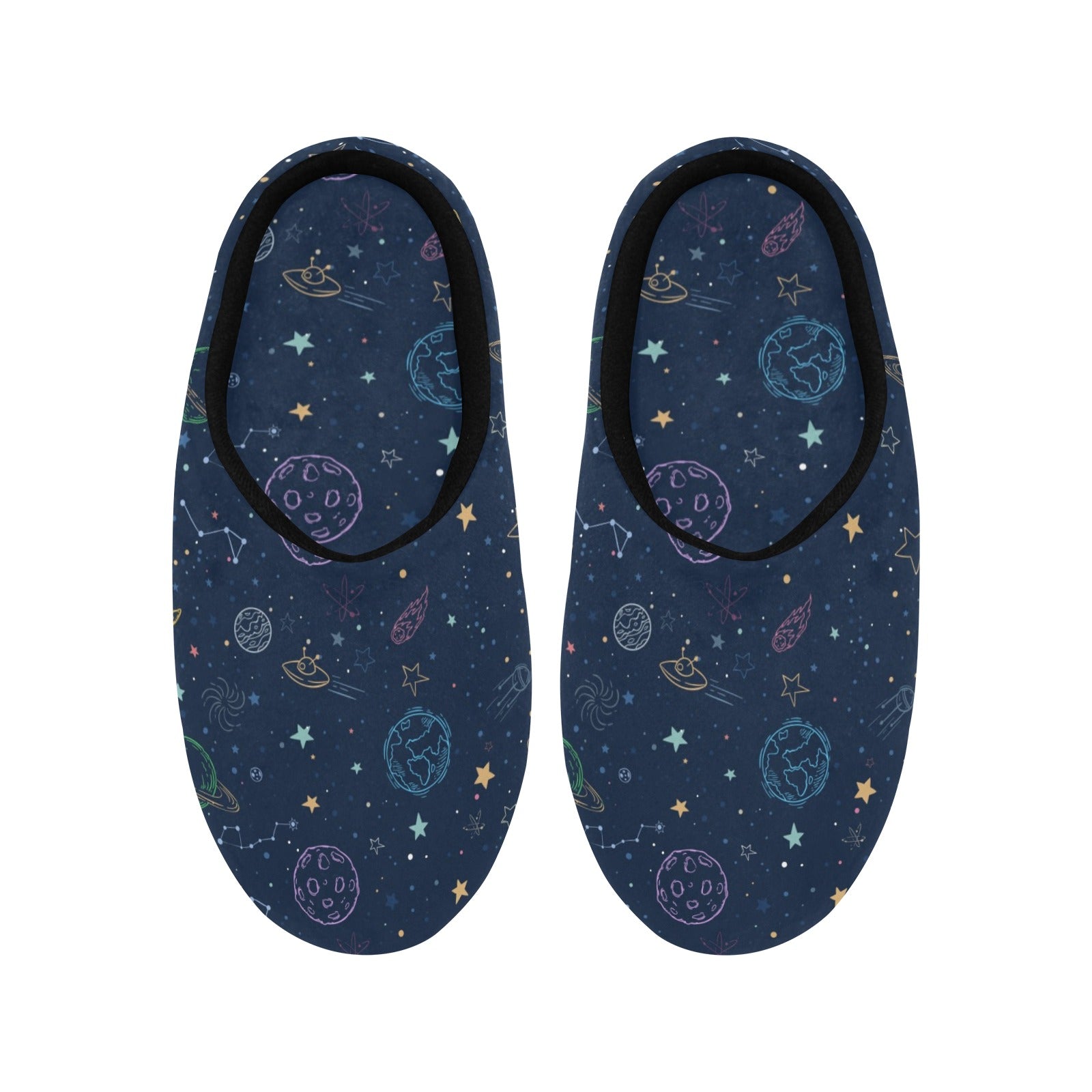 Space Women's Slippers, Galaxy Stars Asteroids Planets Ladies House Slide Handmade Bedroom Warm Winter Cozy Designer Slip On Cotton Shoes