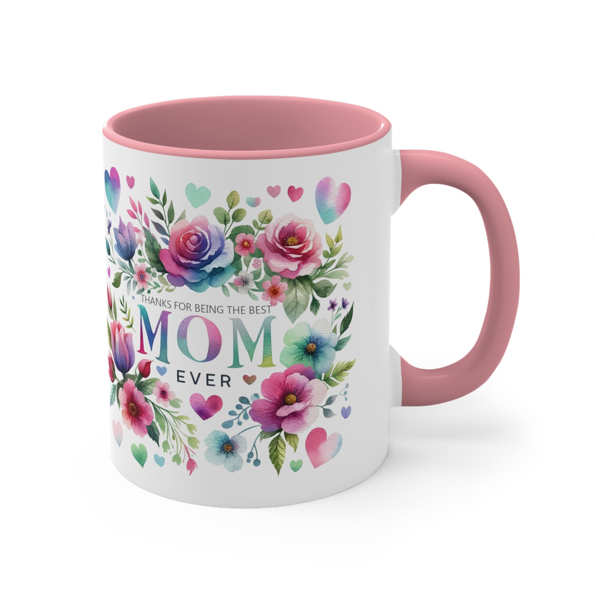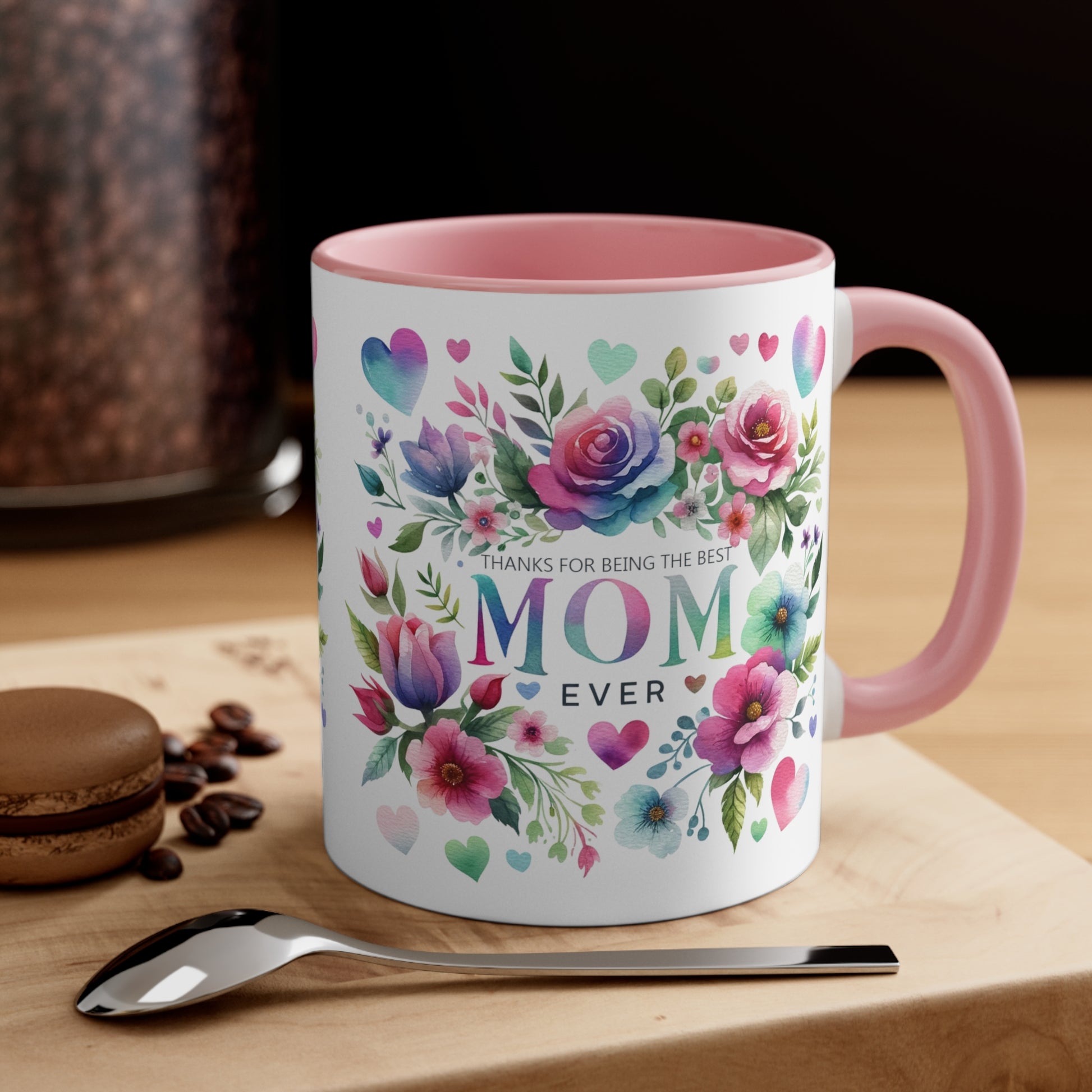 Thanks for Being Best Mom Ever Mug, Love Heart Watercolor Pink Flowers Mothers Day Gift Birthday Christmas Mama Coffee Cup Ceramic Tea