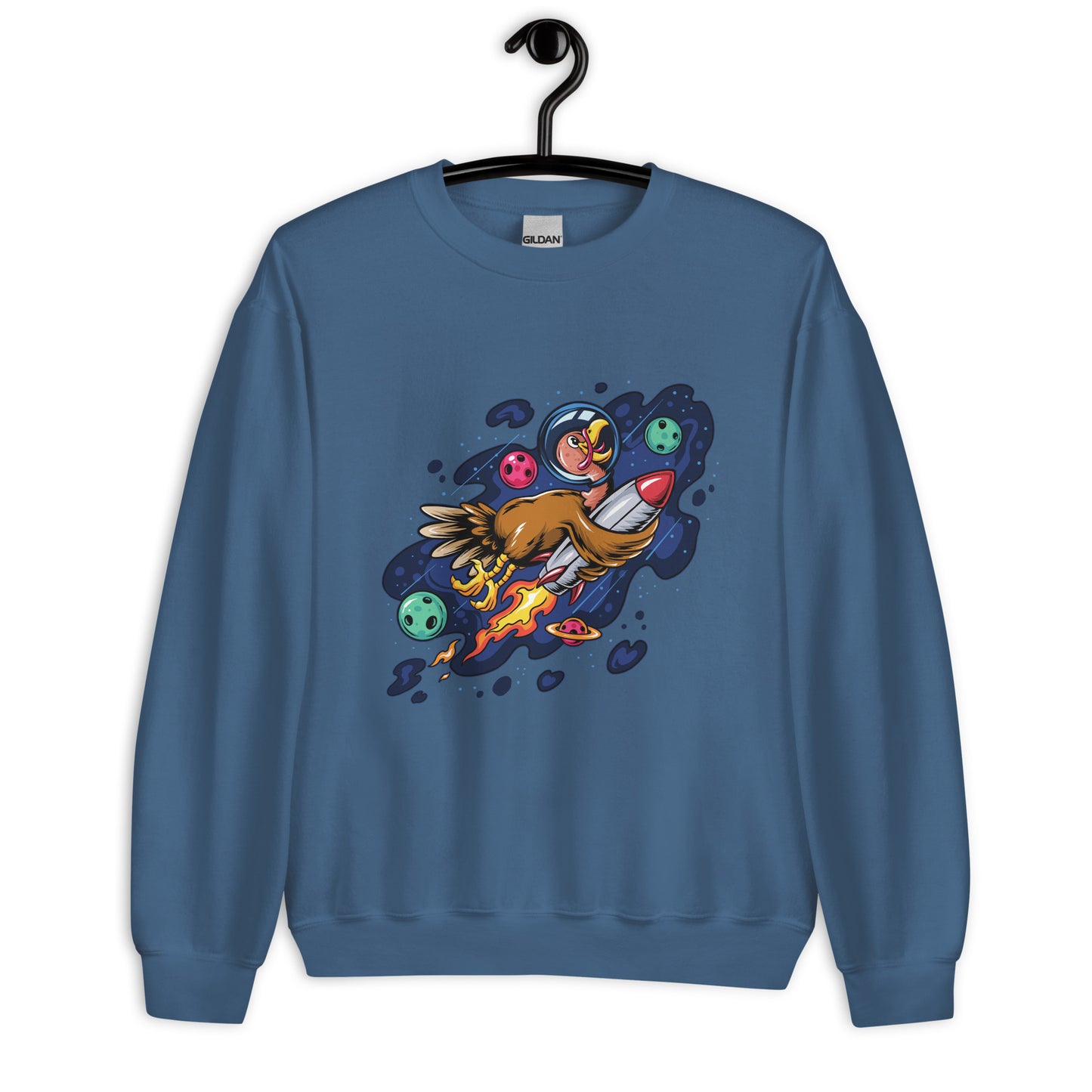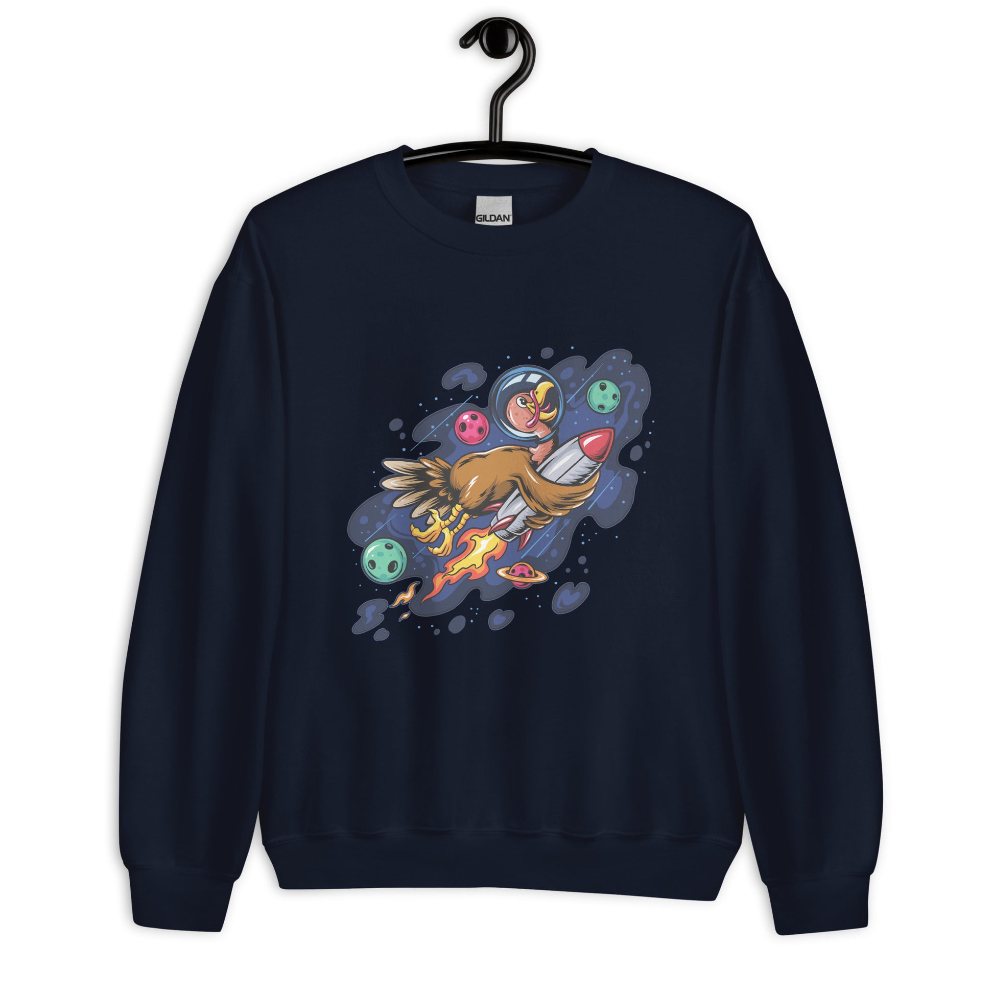 Thanksgiving Sweatshirt, Turkey Space Rocket Funny Graphic Crewneck Fall Fleece Sweater Jumper Pullover Men Women Adult Top