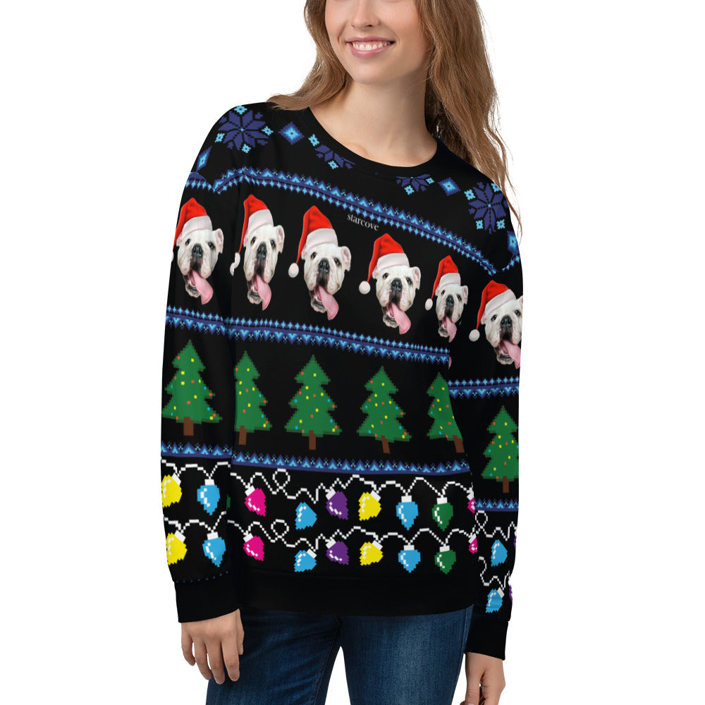 Ugly Christmas Sweater, Custom Dog Faces Cat Sweatshirt, Funny Selfie Boyfriend Girlfriend Photo Gift Party Xmas Family Women Men Holiday Sweatshirt