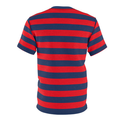Red and Blue Striped Men T Shirt, Navy Blue Vintage Wide Horizontal Stripes 90s Adult Unisex Designer Crewneck Tee Gifts