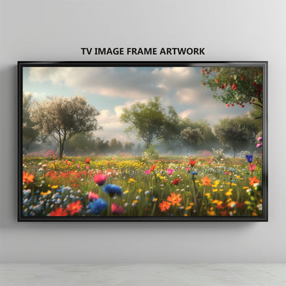Wildflowers Field Frame TV Art, Country Spring Landscapes Botanicals Farmhouse Painting Samsung Picture Instant Download Digital Decor JPG