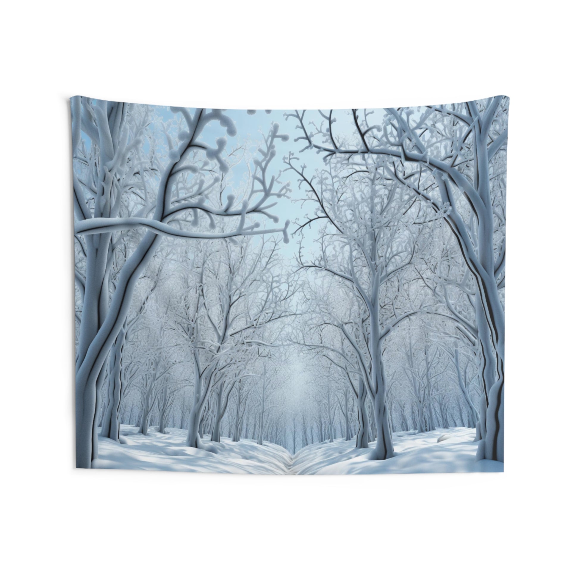 Winter Snow Forest Tapestry, Woods Wall Art Hanging Cool Unique Landscape Aesthetic Large Small Decor Bedroom College Dorm Room