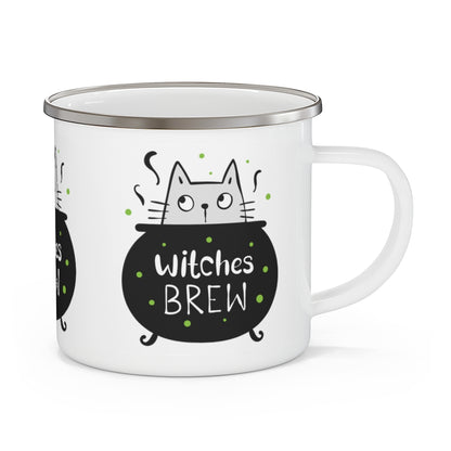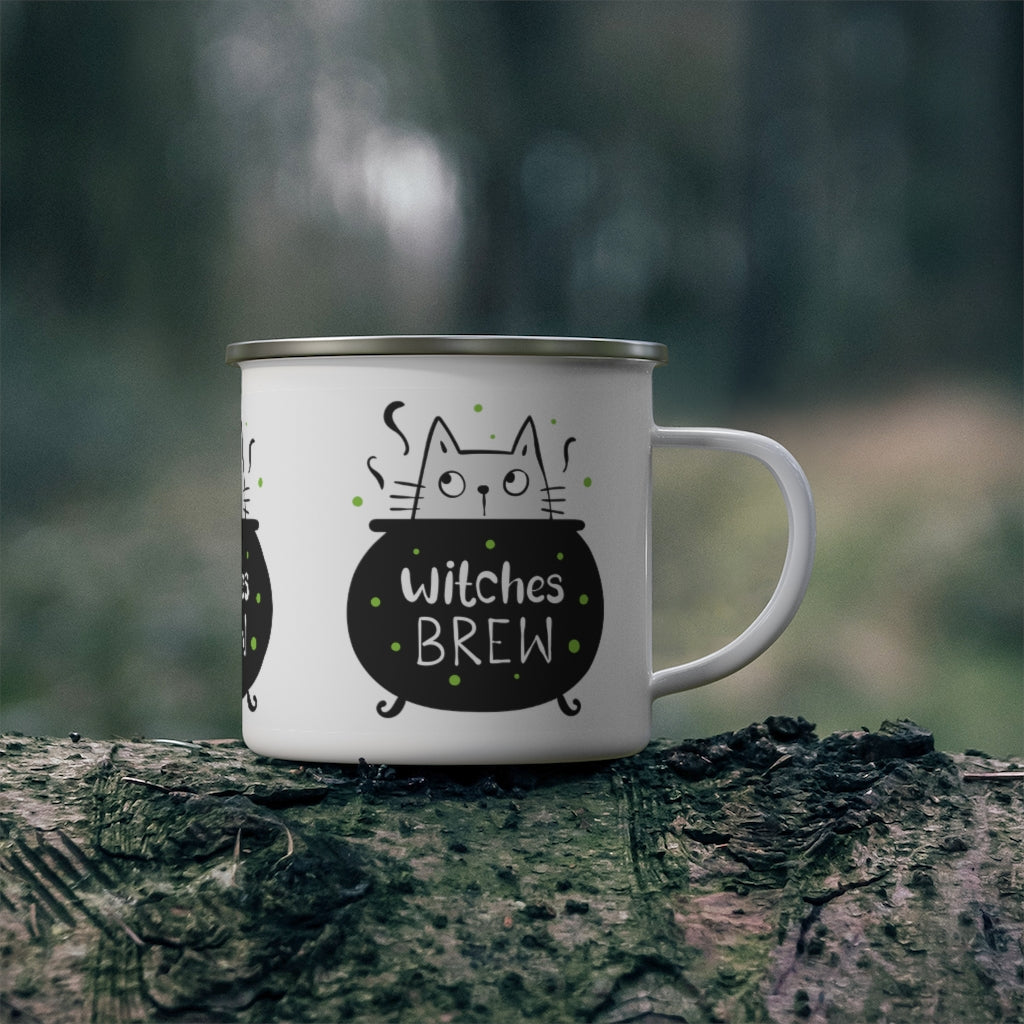 Witches Brew Enamel Camping Mug, Campfire Witch Coffee Gothic Black Cat Stainless Steel Metal Camp Cup Gift
