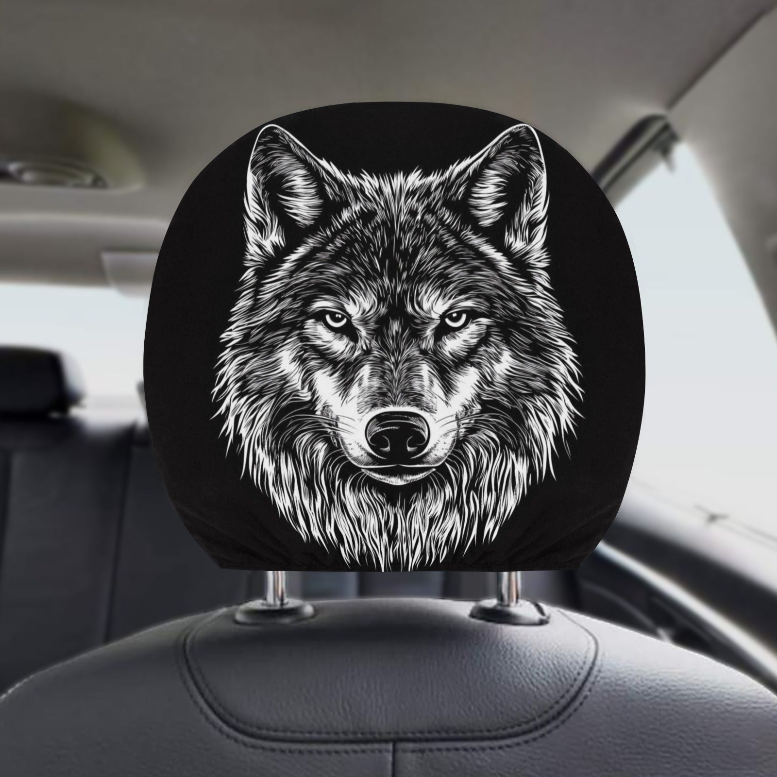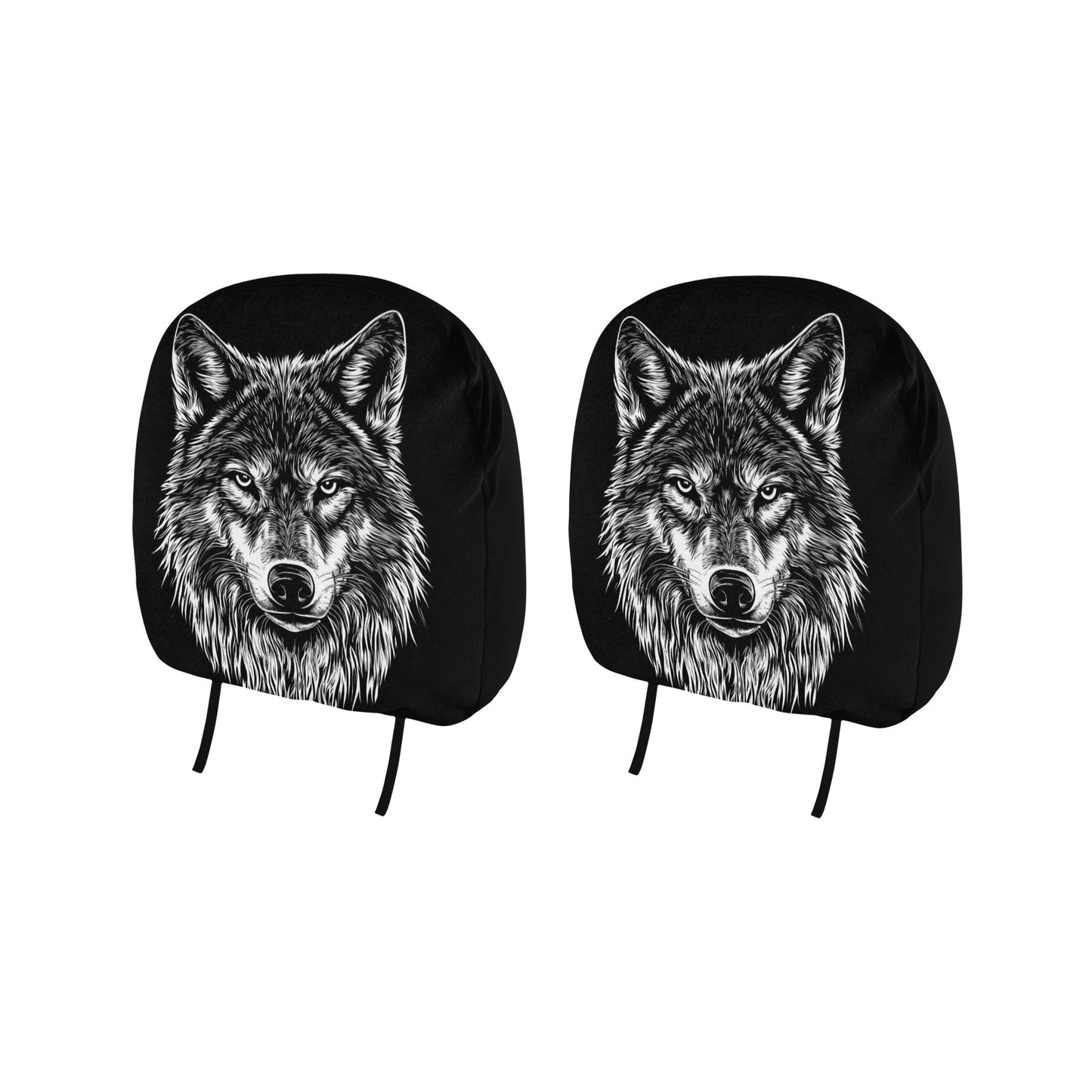 Wolf Flag Car Seat Headrest Cover (2pcs), Animal Black White Print Truck Suv Van Vehicle Auto Decoration Protector New Car Gift